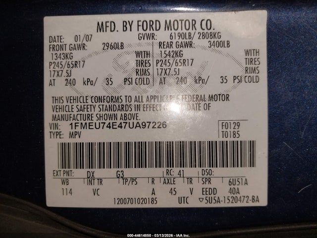 Location: FORD 9 Ford 2007 Sport Utility;0;4.0L V-6 210HP;FORD;EDDIE BAUER;Automatic;Other